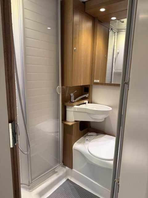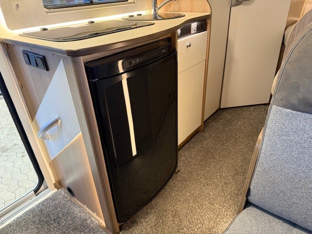 Velholdt Carado med en billængde på 595 cm og 232 cm i bredden. Kompakt camper hvor man kan komme rundet stort set overalt inkl. de fleste byer.